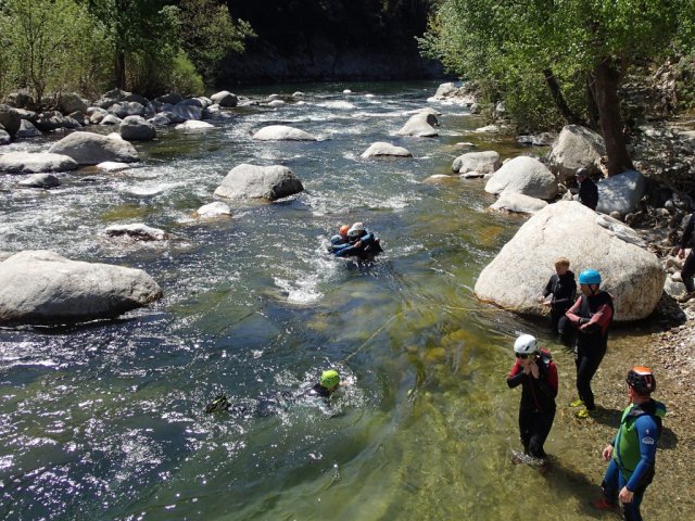 Une démonstration de traversée de collecteur a pu être organisée et les participants ont pu s'essayer au lancer de corde de sécurité, remorquage d'une victime et recherche d'un objet en apnée. Tout ce qu'il faut pour se préparer à valider la partie aquatique du passeport vert.