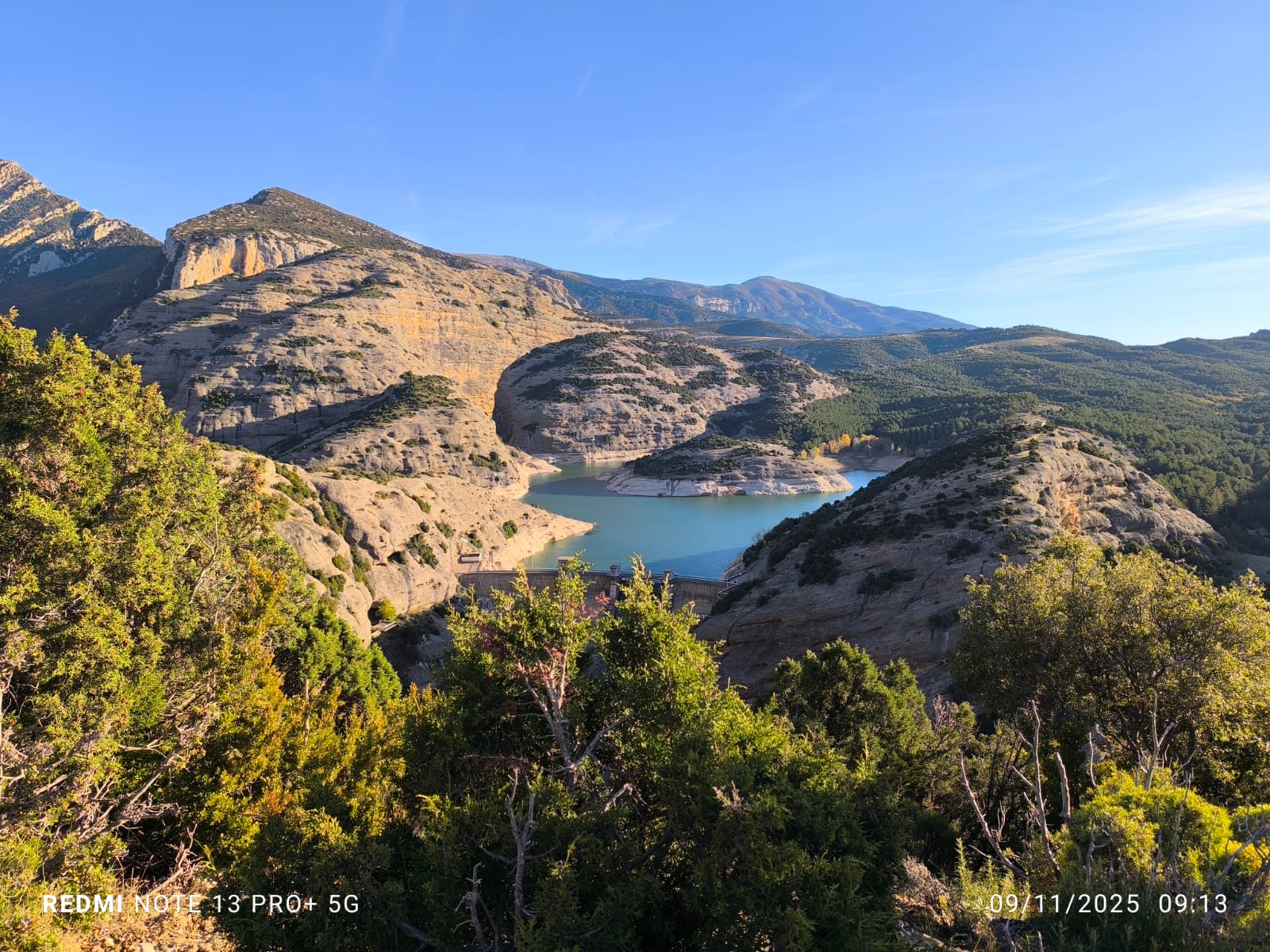 On commence par une superbe marche d’approche d’1H45 (on a un peu hésité sur la fin du chemin) : Des tours de conglomérat rouge orangé qui se découpent dans le ciel avec en arrière-plan le lac de Vadiello entouré de chênes verts, de pins et de buis. On vous laisse imaginer….