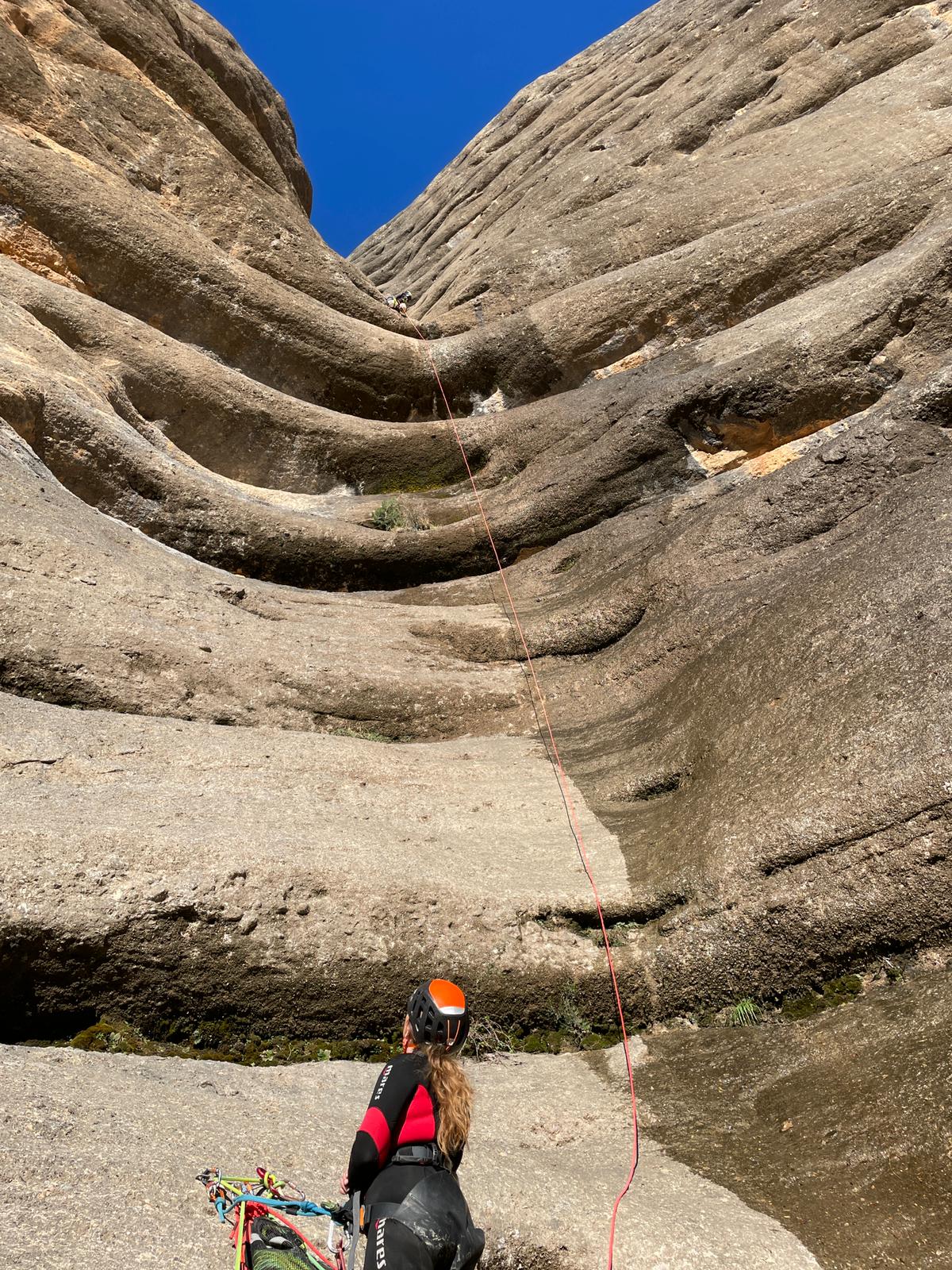 A noter : Il faut parfois chercher les relais (canyon en partie rééquipé) et quelques monopoints subsistent dans la deuxième partie. On ne peut pas se fier uniquement au topo.